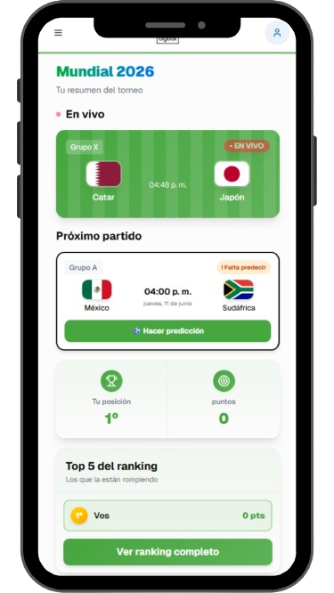 La plataforma de pronósticos del Mundial que une a tu equipo. Engagement asegurado con una experiencia de usuario simple y gestión automática.